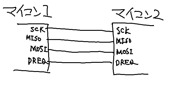 使用するピンですが超低速マイコンと高速マイコンの通信でも動作させるためにDREQピンを使います。