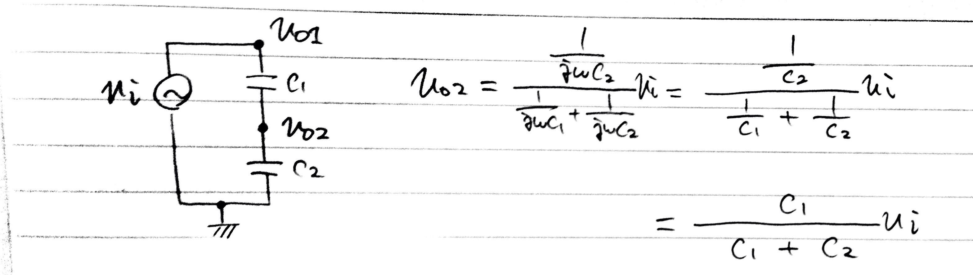 のようになり、抵抗で分圧するときとは逆になりました。コンデンサの中間点をGNDにすると