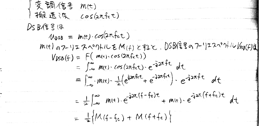 ということで、大学の教科書を読む。SSBはDSB信号のUSBもしくはLSBをフィルタで取り除いたものだからDSBから考えるといいっぽい。