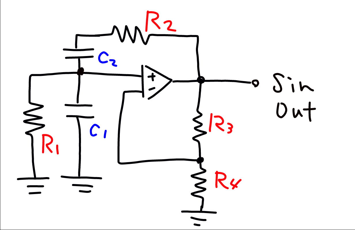 発振条件と出力正弦波の周波数を計算しつつ部品定数を決めてもきれいな正弦波にはなりませんでした。