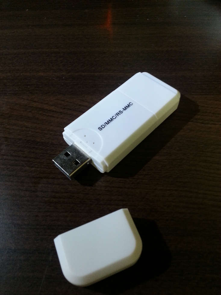 これが例のSDカードリーダーです。これはUSBで挿すタイプですがソケットをいただくのでどんなやつでもかまわんでしょう。