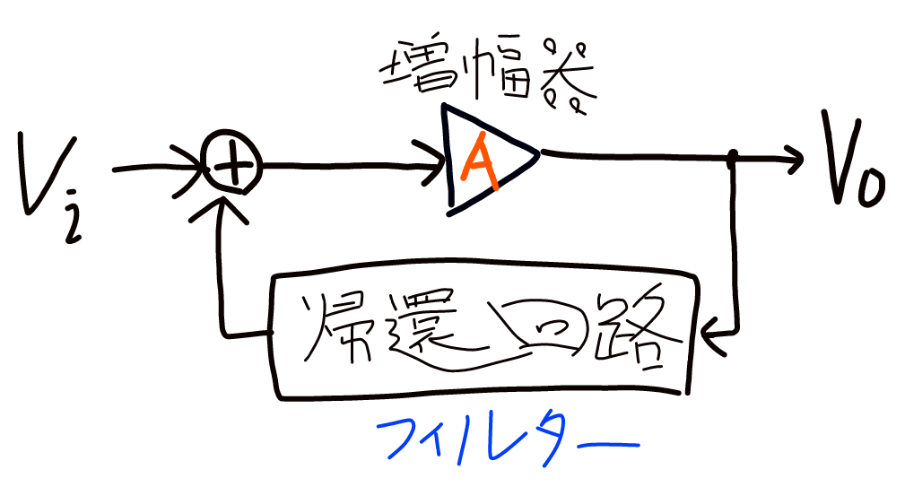 同じ信号といいましたがこれは帰還回路で決めることができます。帰還回路がフィルターになるわけです。